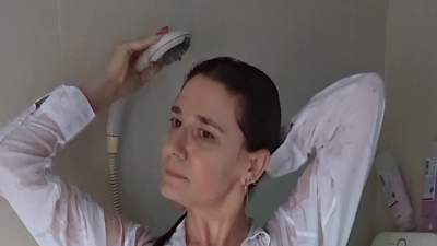 Chloe and Billie were away on holiday, and after a day of playing in the rather chilly water, Chloe decided to warm up with a lovely shower. She wanted to rinse the sea salt from her clothes too, so she hopped into the shower fully-clothed. Once full... Starring: | ||||
