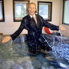 TommyTrojan was surprised by JimT777 with a big sloppy cream pie to the face